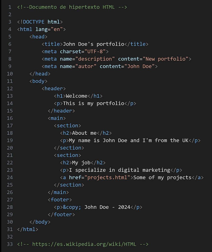 Esquema de un fragmento de código escrito con el lenguaje de marcado de HTML.