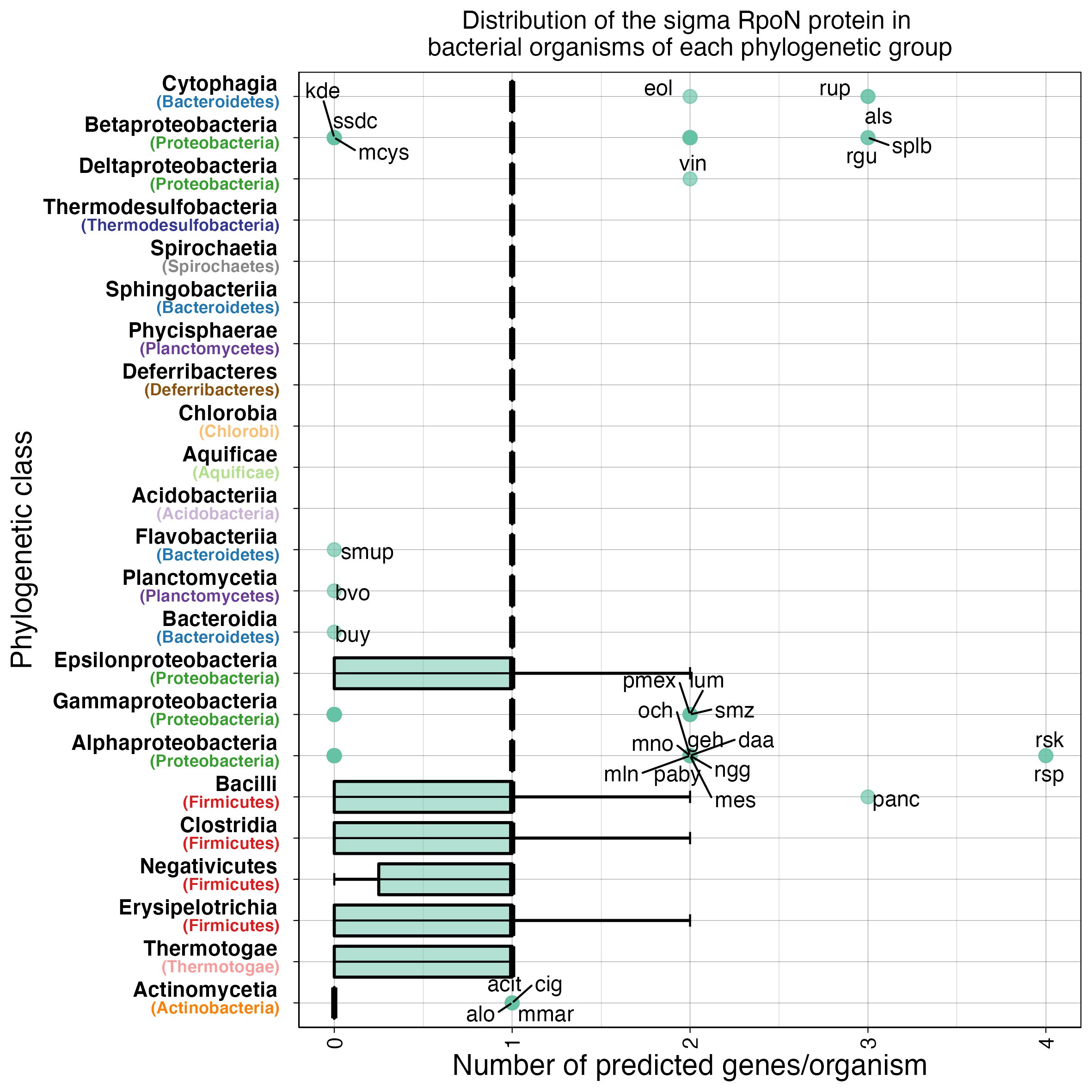 Distribution of the sigma RpoN protein in bacterial organisms of bacterial phylogenetic groups